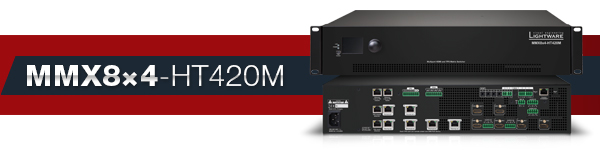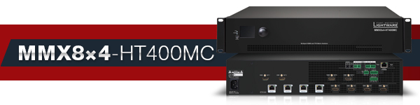 The other two models in the lineup, MMX8x4-HT420M and MMX8x4-HT400MChave 8x4 HDMI crosspoints with even more options for embedding and de-embedding audio with the help of the user-selectable bi-directional analog audio ports. The devices have TPS (HDBaseT) ports, and the feature rich MMX8x4-HT420M also has 48V PoE remote powering services. There is an ample number of IR, RS-232, Relay and GPIO ports to serve all the needs of the built-in Event Manager room control, and also to provide channels to send control commands to remote ends.