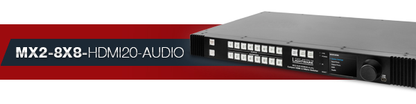 Soon, 16x16 and 24x24 crosspoint versions will join the MX2 lineup, with optional audio embedding and de-embedding capabilities in the case of MX2-16x16-HDMI20-Audio and MX2-24x24-HDMI20-Audio.