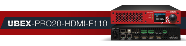 UBEX is a fiber-optical, high-end AV-Over-IP system, which delivers 4K/UHD@60 Hz, 4:4:4, also supporting HDR formats over long distances ranging between 400 m and 80 km depending on the SFP+ modules used, which are field-exchangeable.